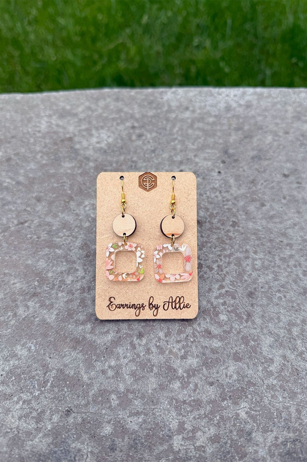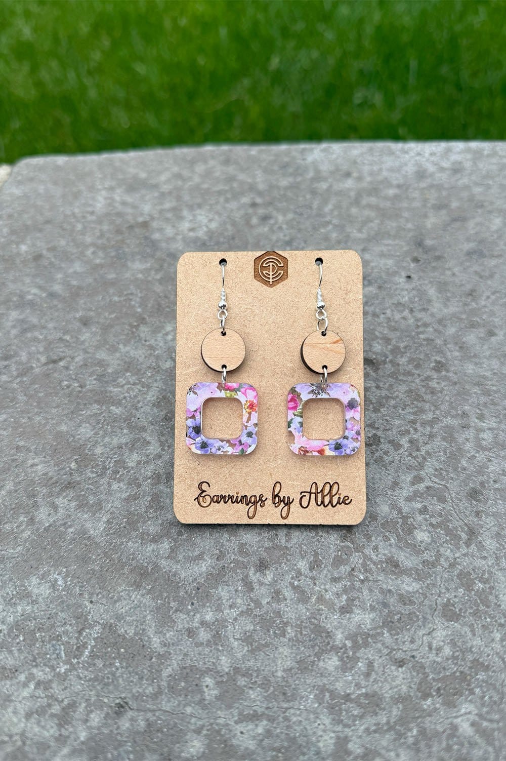 Acrylic and wood earrings with hypoallergenic earring hooks made of silver/gold-plated copper and nickel-free! Additional colors besides what you see are an option, just type away in the box below!
