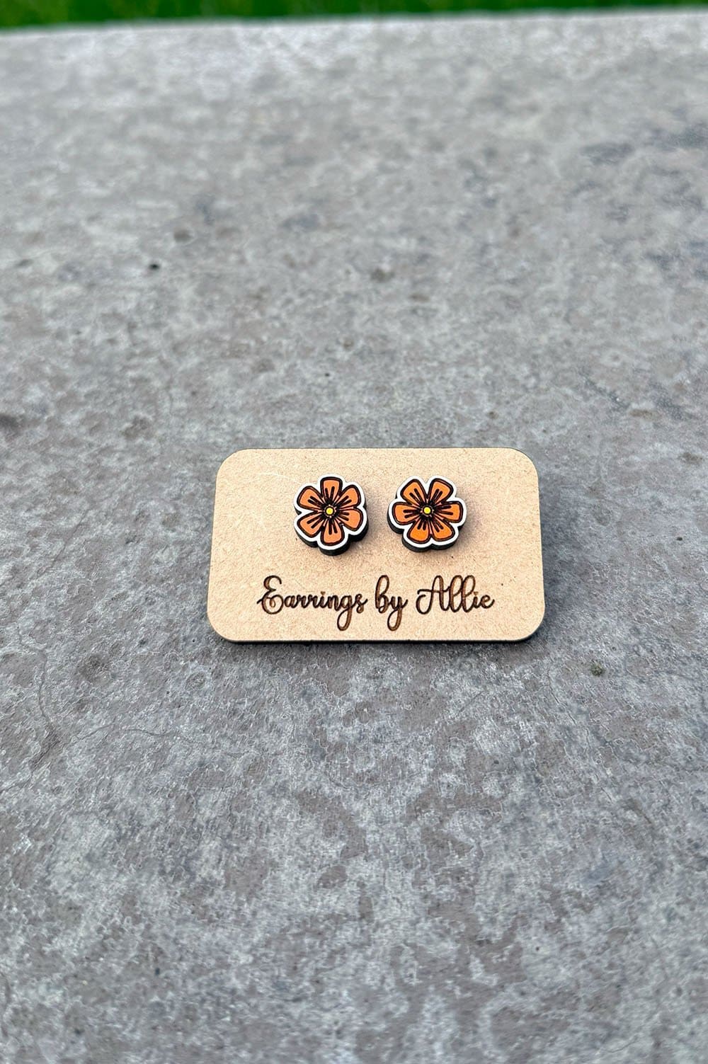 Hand painted wood earrings with hypoallergenic earring backs made of silver/gold-plated copper and nickel-free! Additional colors besides what you see are an option, just type away in the box below!