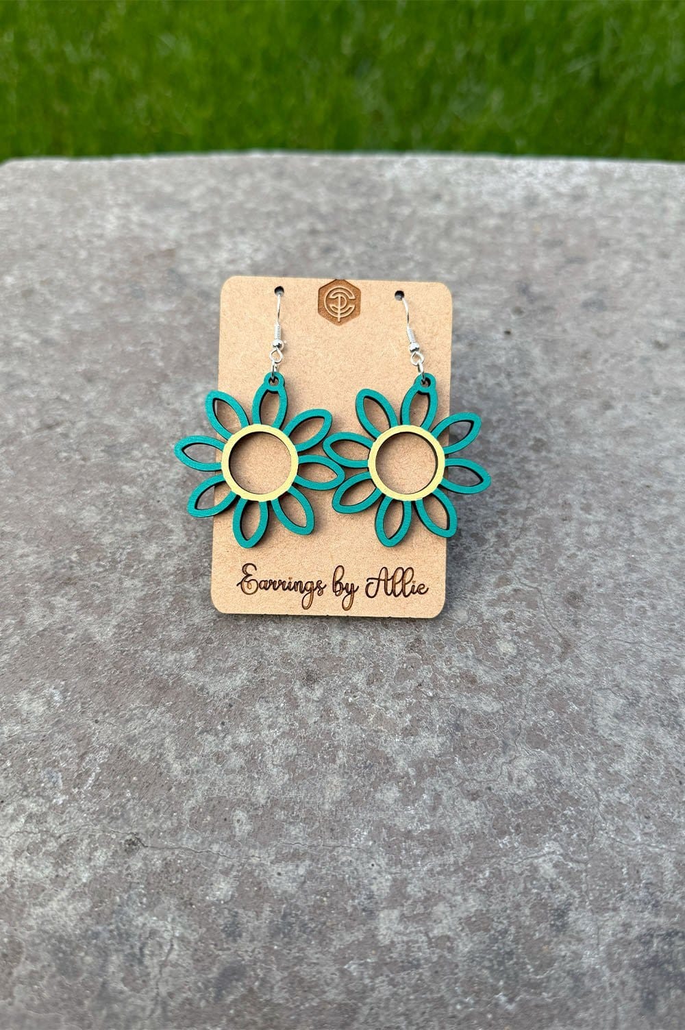 Hand painted wooden earrings with hypoallergenic earring hooks made of silver/gold-plated copper and nickel-free! Additional colors besides what you see are an option, just type away in the box below!
