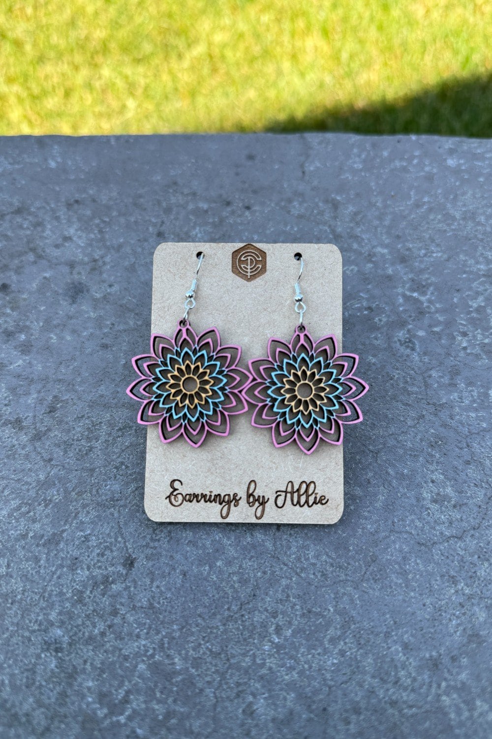 Hand painted wooden earrings with hypoallergenic earring hooks made of silver/gold-plated copper and nickel-free! Additional colors besides what you see are an option, just type away in the box below!