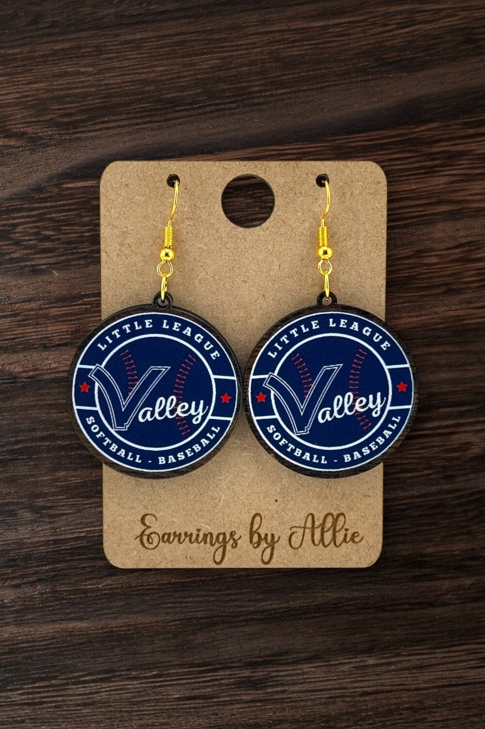 Celebrate the season in style with these handmade wooden earrings, crafted for Valley Little League. Their natural wood finish pairs beautifully with spirit wear, while hypoallergenic stainless-steel hardware ensures comfortable wear all season long. Lightweight and on theme, they’re the perfect accessory for game days!