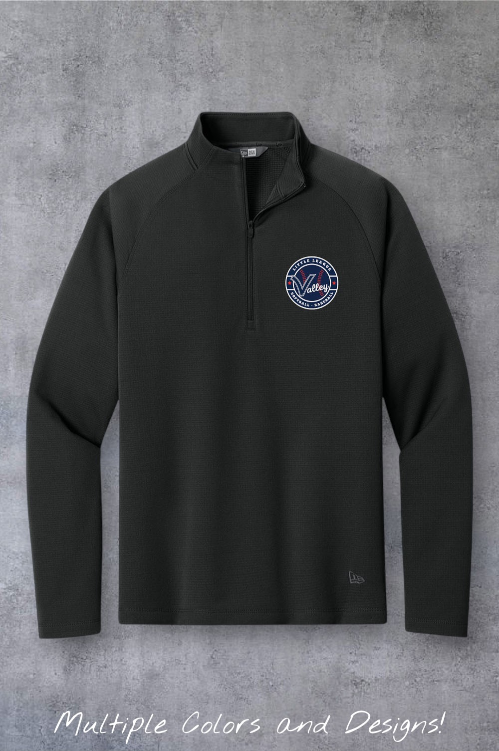 Represent the Valley Little League in style with this New Era® Stand Out 1/4‑Zip! Made from a 5.7‑ounce blend of 100% recycled polyester, it offers lightweight comfort with a sleek design that feels effortlessly modern! Perfect for everyday wear or showing your team pride around town, this 1/4‑zip blends sustainability, durability, and a contemporary look in one essential piece!